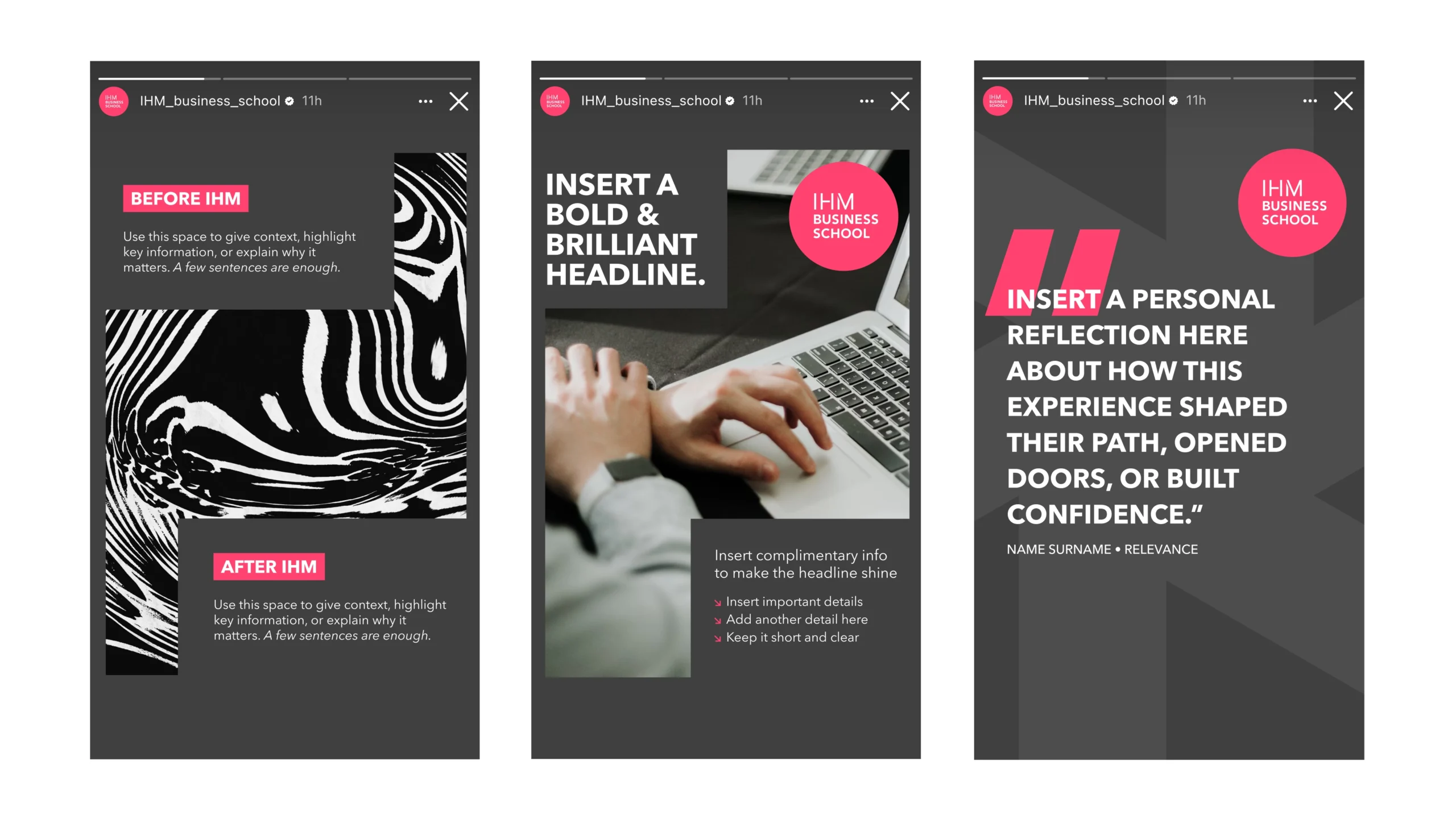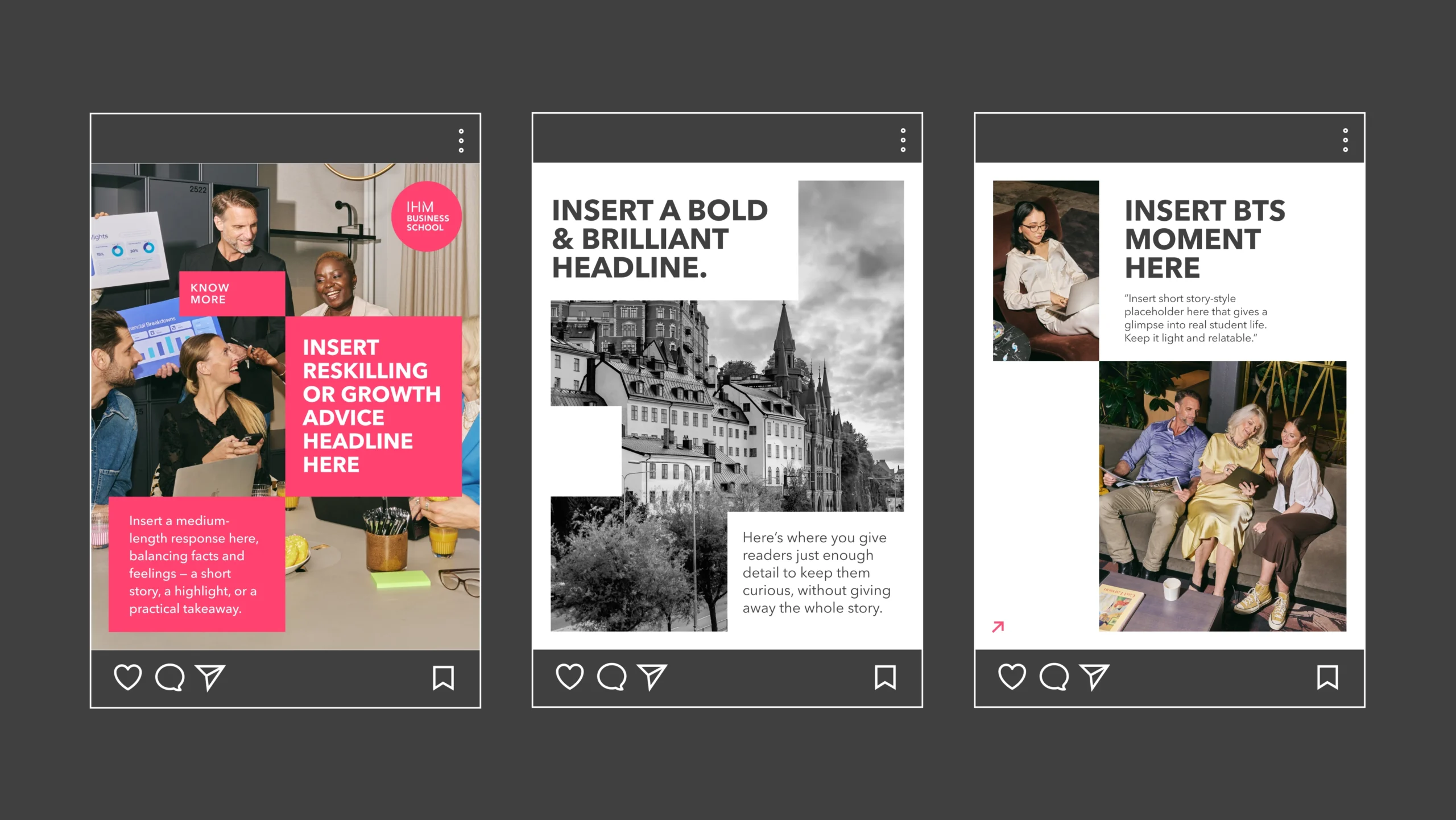IHM Business School needed a more cohesive and scalable solution for its creative production. Together with Klingit they developed a new visual identity and effective templates that strengthen the brand and simplify daily work.